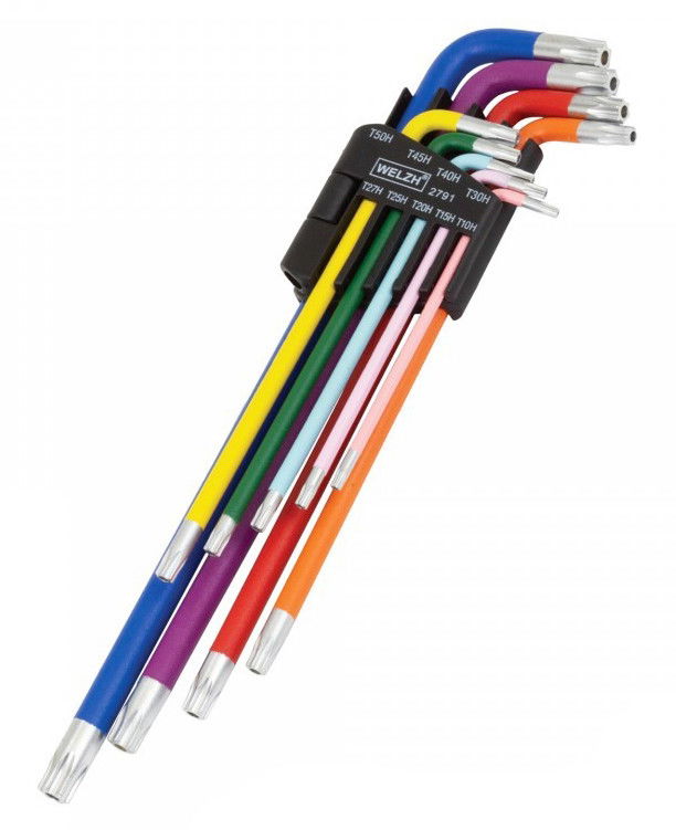 Welzh Werkzeug 2791-WW L-alakú, extra hosszú, színkódolt furatos torxkulcs készlet, 9 részes