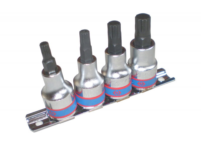 King Tony 4 részes 1/2˝-os spline bitfejkészlet sínen 4126PR