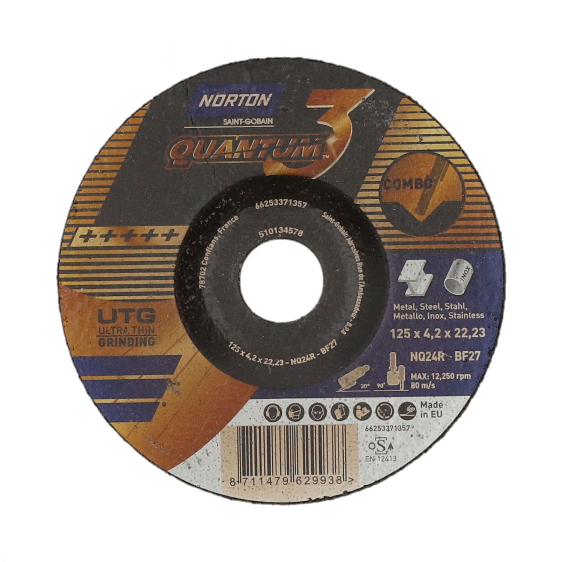 Norton Quantum 3 fém-inox tisztítókorong 125x4,2x22,23mm, 20 db/csomag