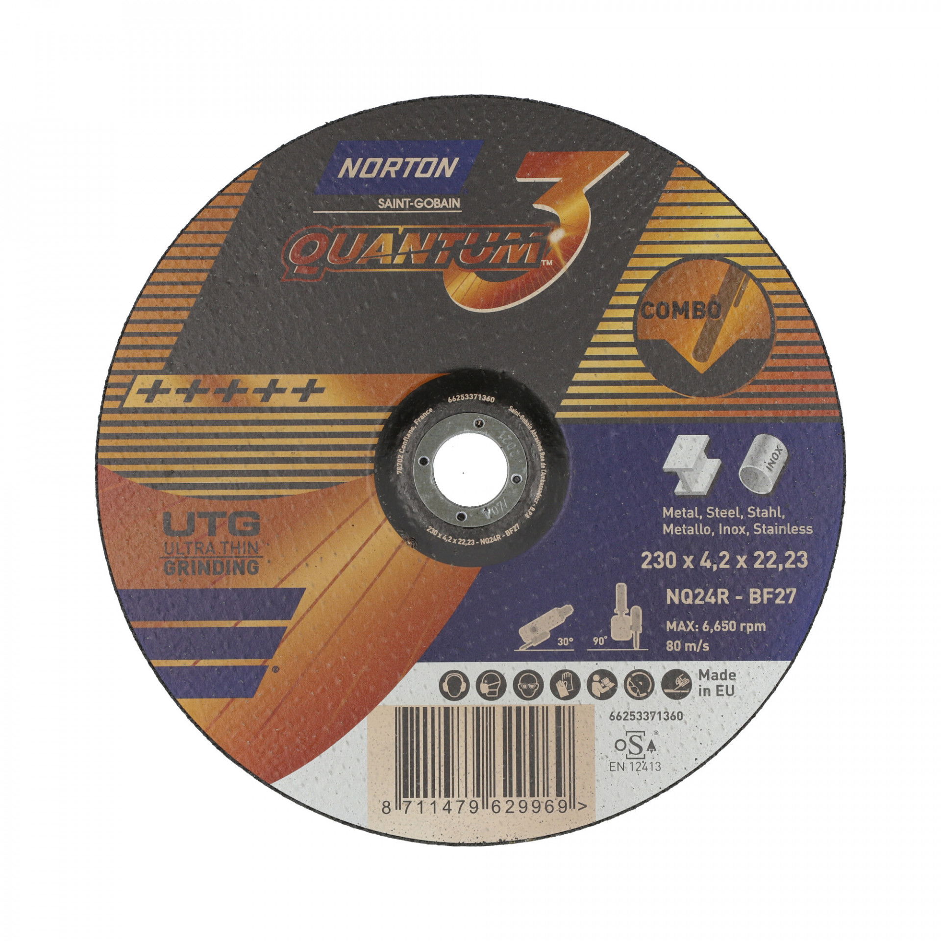 Norton Quantum 3 fém-inox tisztítókorong mindenféle fekete acél optimalizált teljesítményére tervezték. A kerámia / alumínium szemcsekeverék garantálja az abszolút maximális anyagleválasztási sebességet és a vágási sebességet. Nagyon kényelmes használatban. Ahol valódi időt, erőfeszítést és eljárási költségeket kell megtakarítani. Gyors csiszolási formula, gyorsabban elvégzi a munkát. A továbbfejlesztett vezérlés biztosítja a precíz csiszolási pontosságot. Dolgozzon olyan nehezen elérhető helyeken, mint a sarkok és barázdák. Simább érzés, csökkenti a fáradtságot és javítja a kezelő kényelmét. Az akkumulátoros csiszológépek áramerősségének javítása a könnyű súly / gyors vágás miatt.