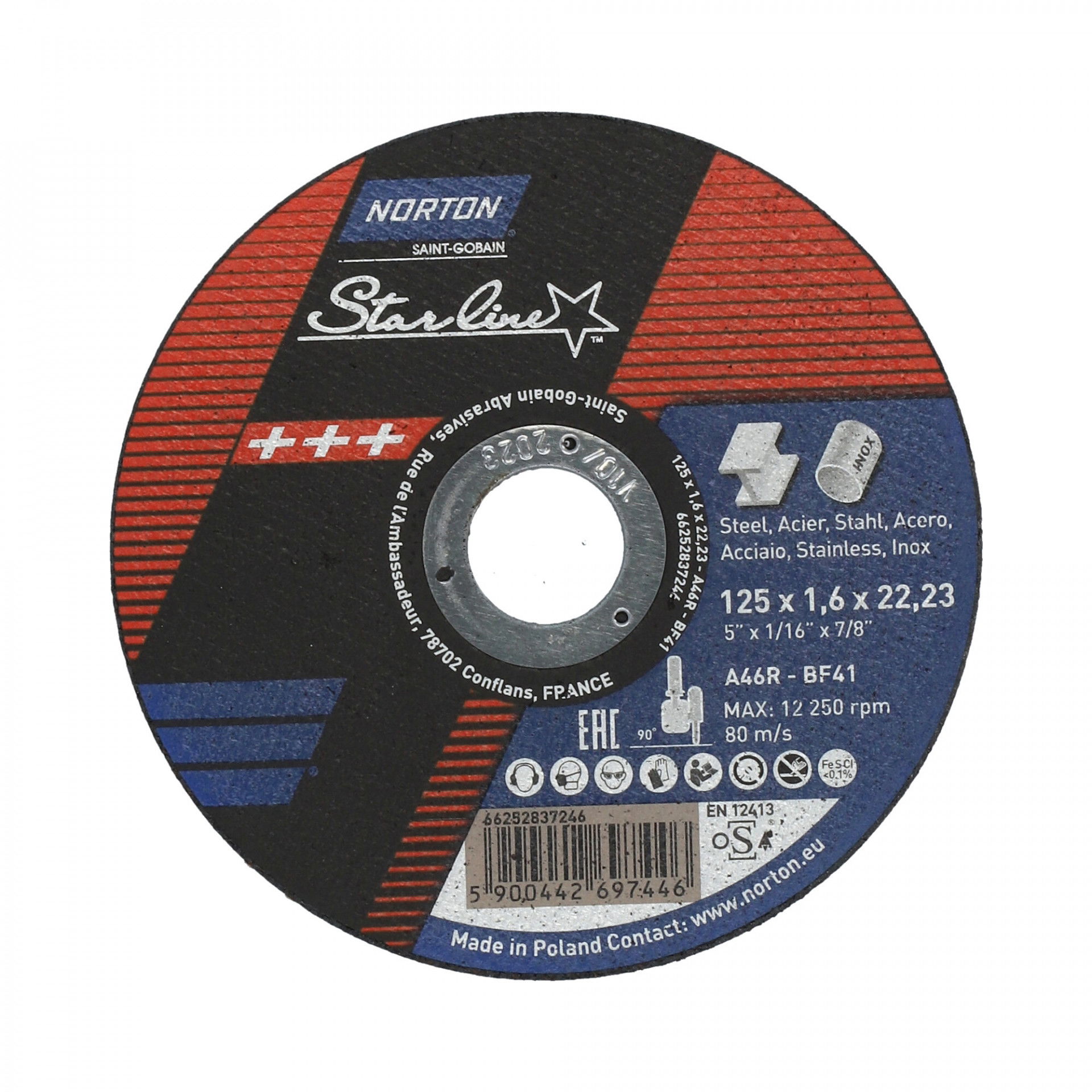 Norton Starline vágókorong 125x1,6x22,23mm A46R, 25 db/csomag