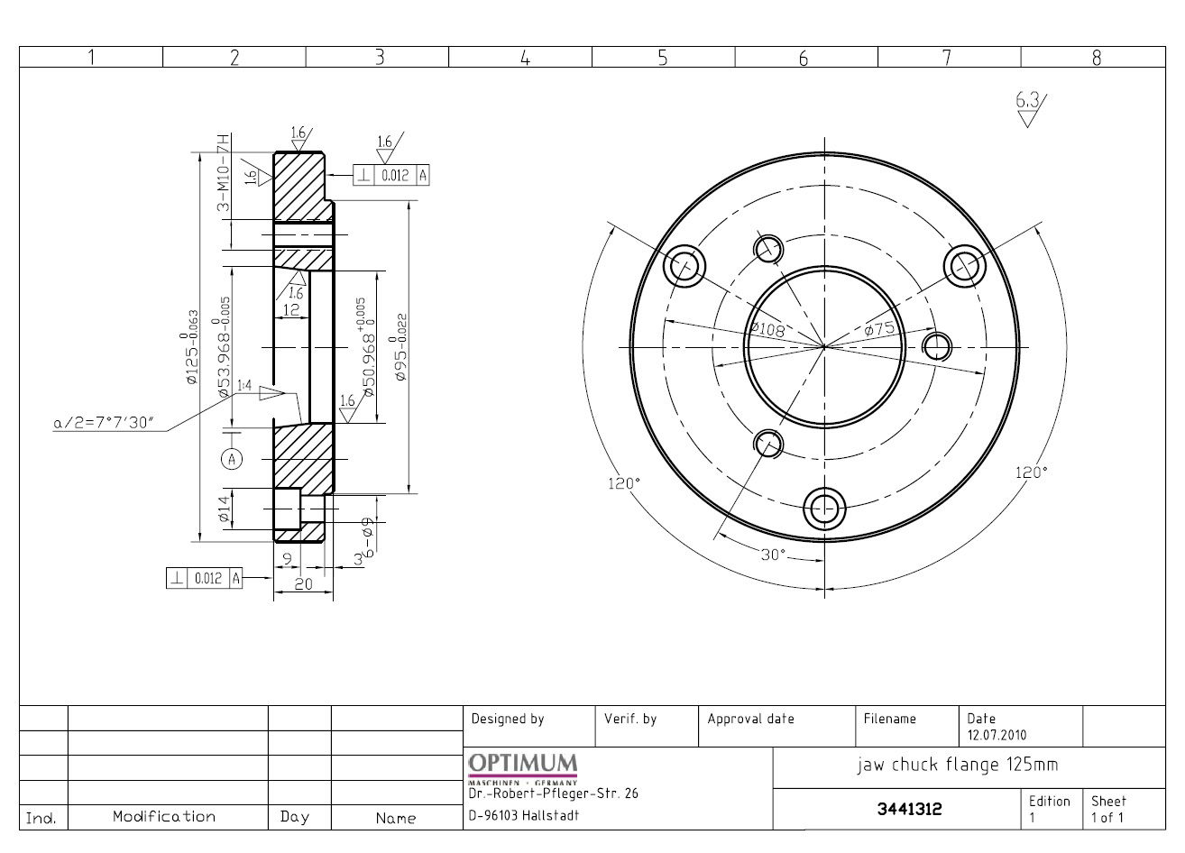 Optimum Tokmányfelfogó tárcsa, 3 pofás tokmányhoz D240/D280-hez